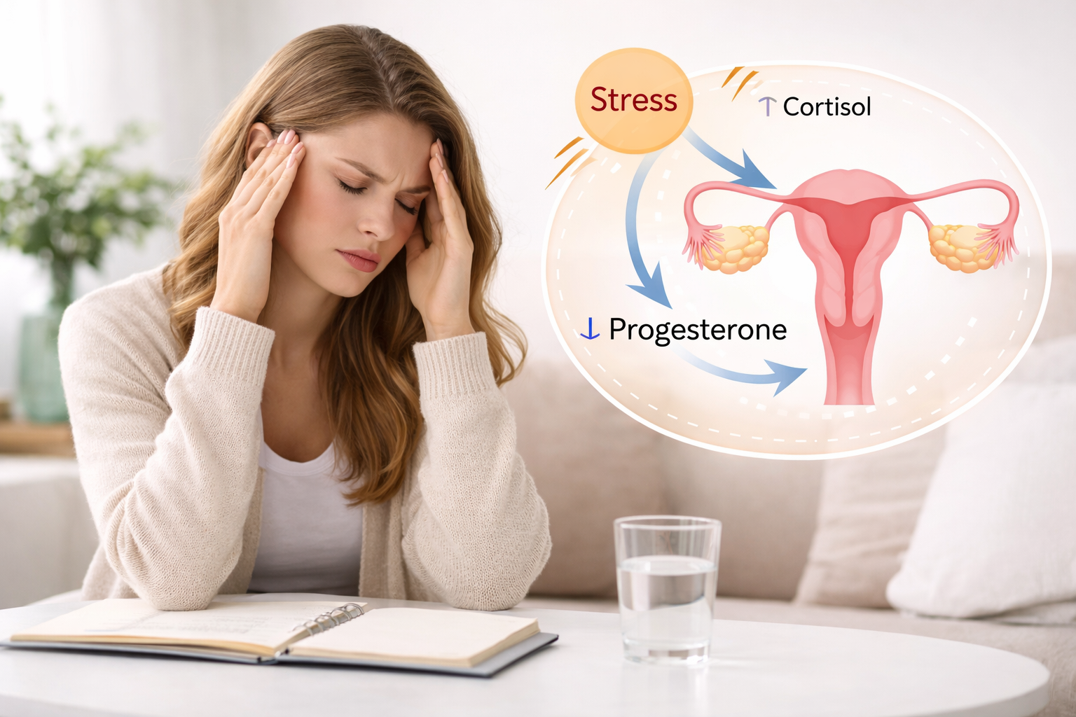 Stress increases cortisol, which disrupts progesterone balance.
